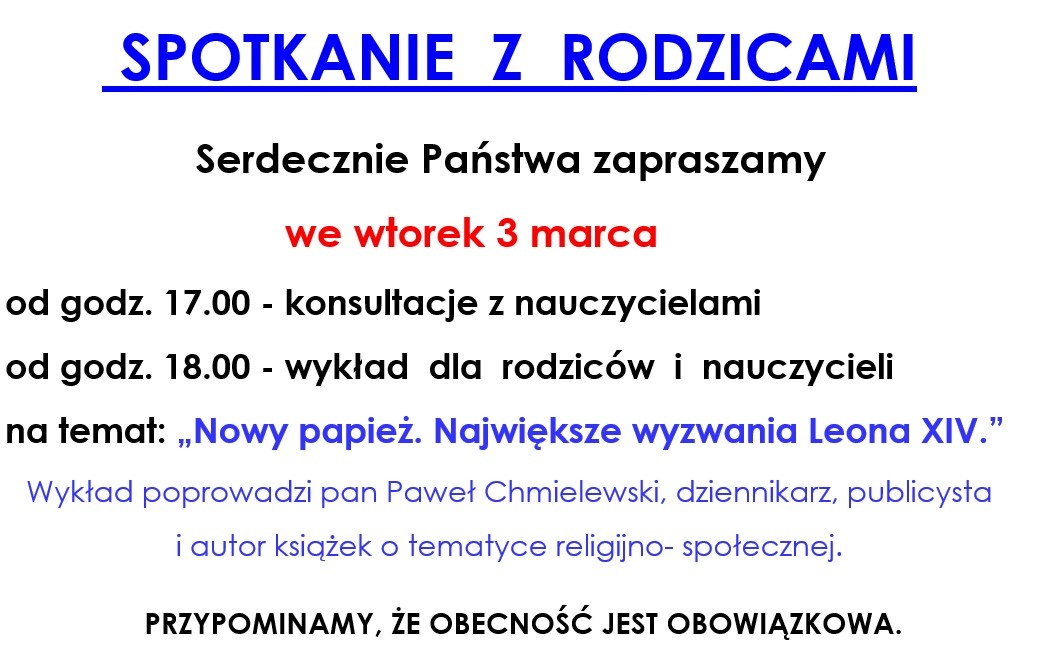 Serdecznie Państwa zapraszamy we wtorek 3 marca od godz. 17.00 - konsultacje z nauczycielami od godz. 18.00 - wykład dla rodziców i nauczycieli na temat: „N...